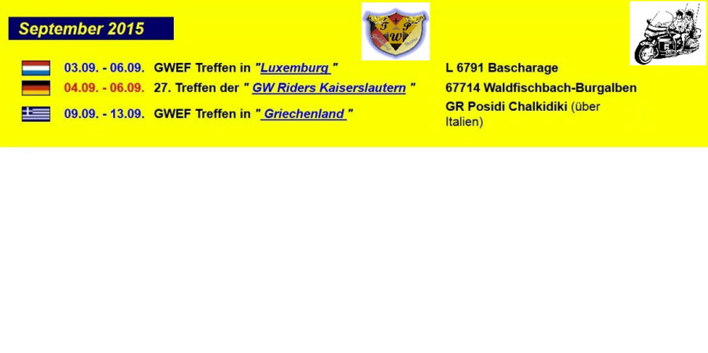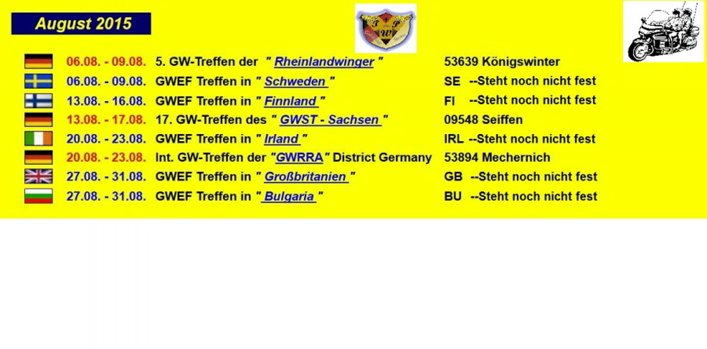 Startbild-Willkommen Winterpause Termine 2017 Wir sind Bochum Hinweis für Nutzer Einleitung Treffen- Termine 2016 April 2016 Mai 2016 Juni 2016 July 2016 July 2016-2 August 2016 September 2018 Startbild -Alt-- Tagestour-Flamme an-- LED-S fürs Wingerherz NEU-Vorläufige Termine 2015 Planung Luxemburg Tour 2014 NEU-Holland-Reuver-Treffen 2015 Triangeltreffen 2015 Cheb Bilder -Luxemburgtour 2014 Bilder-Holland-Reuver 2014 Red Hair Tour 2014 Bilder-Ketsch-2014 Trike und Co-Bilder Wingvertausch- Nachher--Vorher Begrüssung der neuen Winger--Manfred und Elisabeth Goldwing -Treffen Assen 2013 GW-Treffen Neuss 2013 Daasdorf 2013 NEU-Scheibenwischer für die Wing Impressionen aus Bochum Clubraum - Bigbikesbochum Elmann -Zusatzkoffer-Goldwing Elektrische Scheibe für unsere Wing Anhängerimpressionen Unsere Wing als Quad Goldwing - History Wingfarben HONDA-Colorcodes Goldwingclubs Anfahrtsziele--Treffpunkte Die neue Wing-2012 Treffen-Assen 2012 Männertour 2012 Für die Freunde des Nordens Sonderschrauben für die Goldwing Wunsch zum Neuen Jahr Kontakt